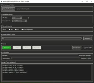 Whisper GUI, version CPU et GPU – (Transcription vidéo/audio en texte et en local)